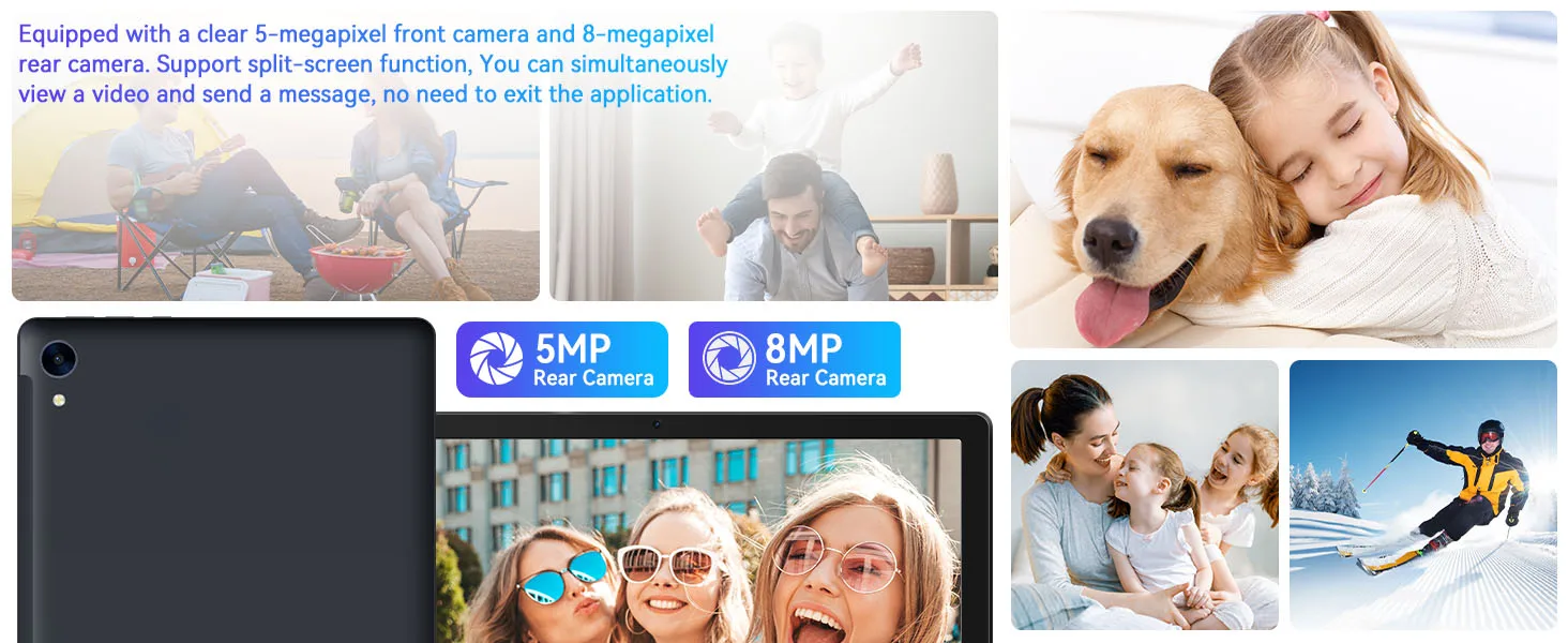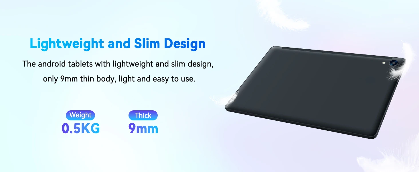 Multifunctional Configuration: The Android tablets have a lightweight and slim design, with a body only 9mm thin, light, and easy to use. Android Tablet features WiFi 6 technology for faster data transfer. Equipped with a clear 5-megapixel front camera and an 8-megapixel rear camera. Support split-screen function, you can simultaneously view a video and send a message, no need to exit the application.