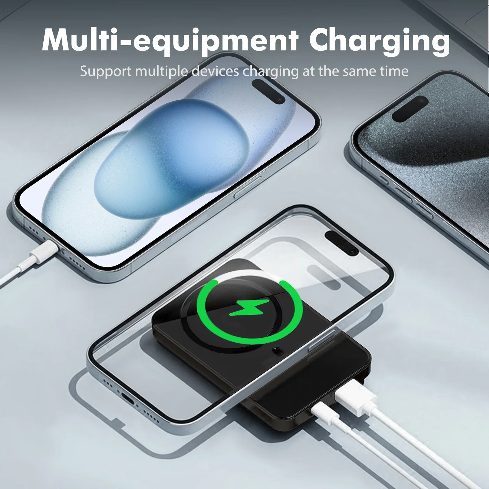 【Wide Compatibility, Energy Abundance】With a 10000/5000mAh large capacity, this charger is not only an ideal companion for your phone but also a power source for various smart devices. It supports smartphones, tablets, portable fans, headphones, AirPods, fitness bands, and smartwatches, meeting all your charging needs and keeping you fully charged on every journey.