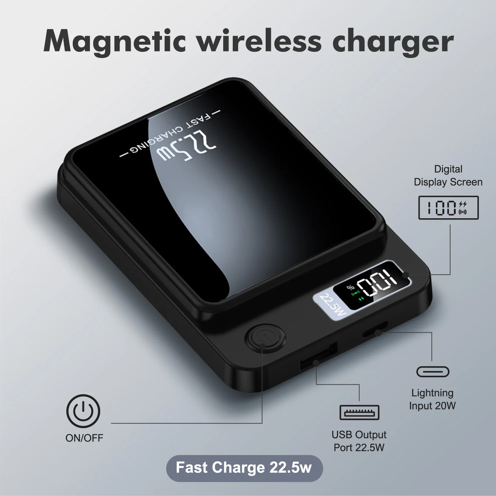10000mAh 5000mAh Magnetic Wireless Power Bank 22.5W Fast Charging with LED Digital Display Compatible with Wireless and Wired Charging, USB -C Battery Pack for Quick Charging Mobile Power