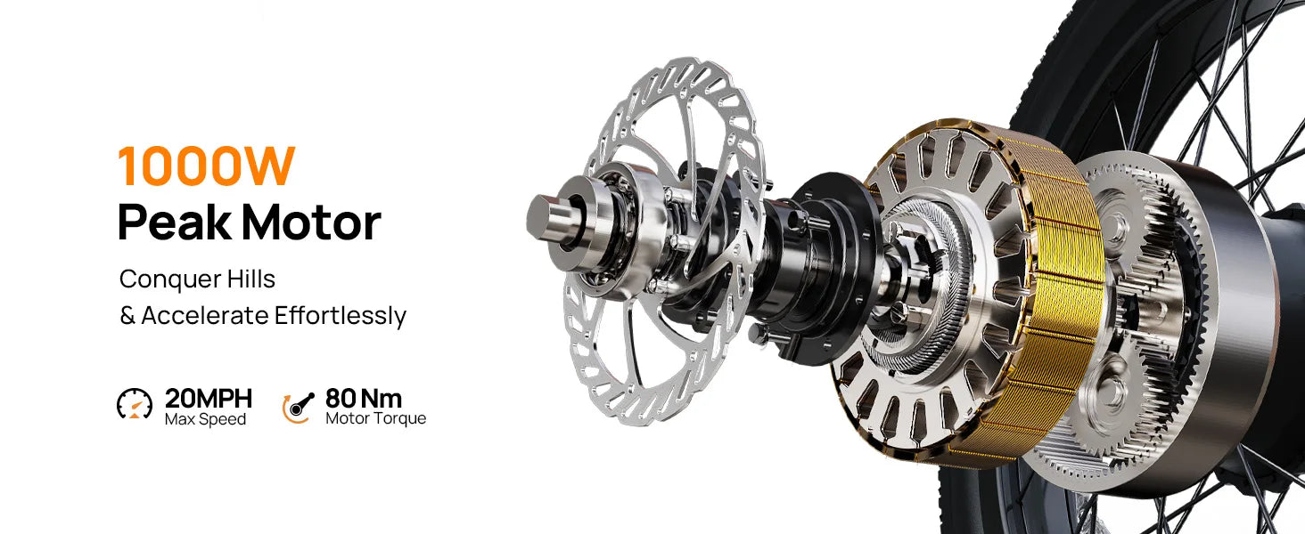 1000W E20 Electric Bike | 48V 13Ah Removable Battery, 20MPH, 20''X3" Fat Tire, 7-Speed Electric Bicycles with Dual Disc Brake