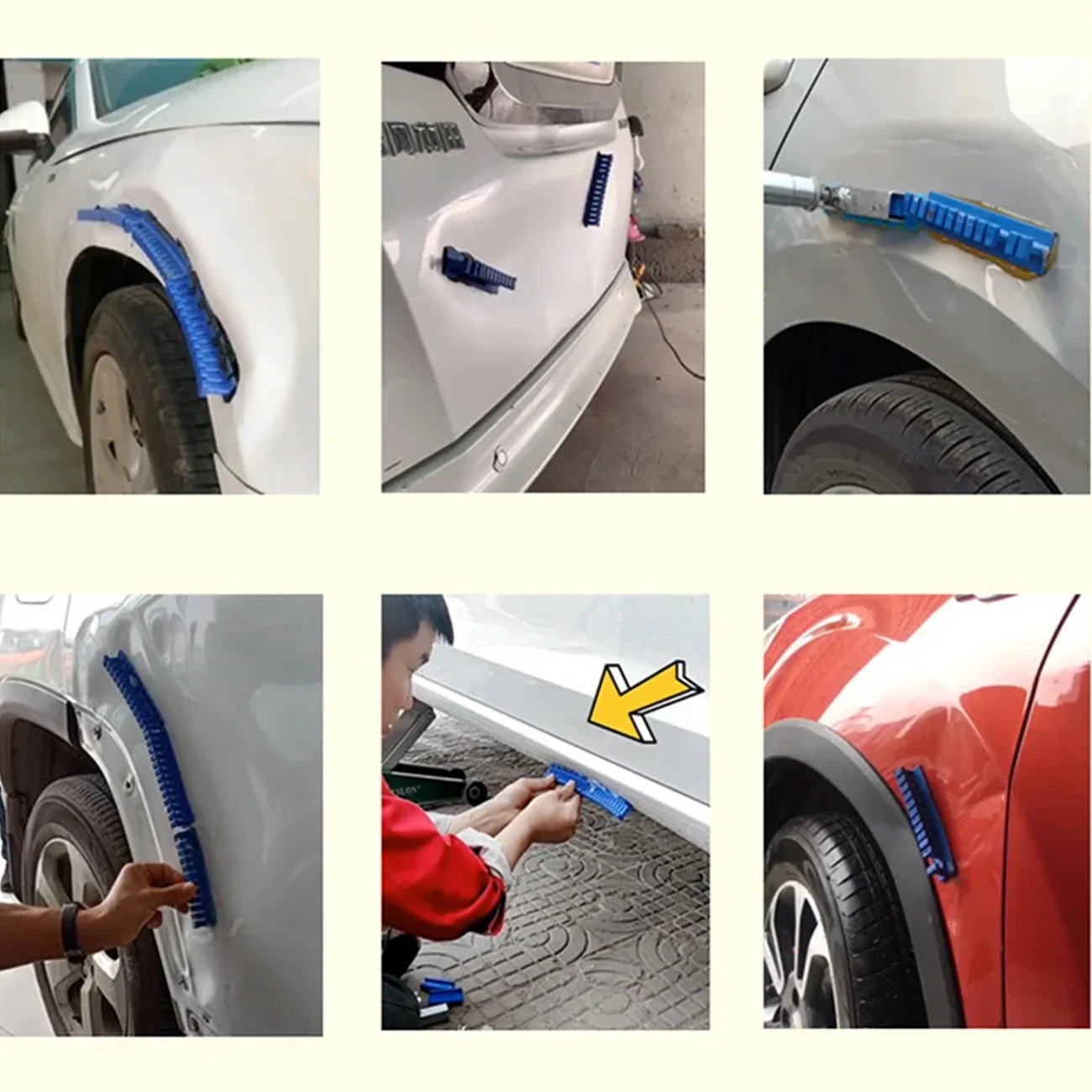 2. The principle is making glue tabs stick on the dent and use tools pulling the tabs and lift the dent.