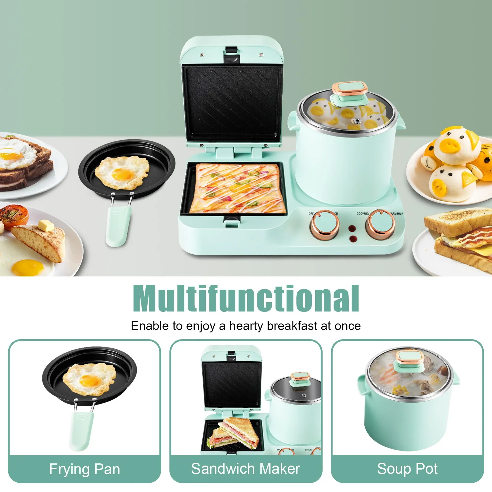 3in1 Breakfast Station Electric,110V Mini Toaster Bread, Multifuncational Breakfast Station with Frying Pan, for Making Noodles