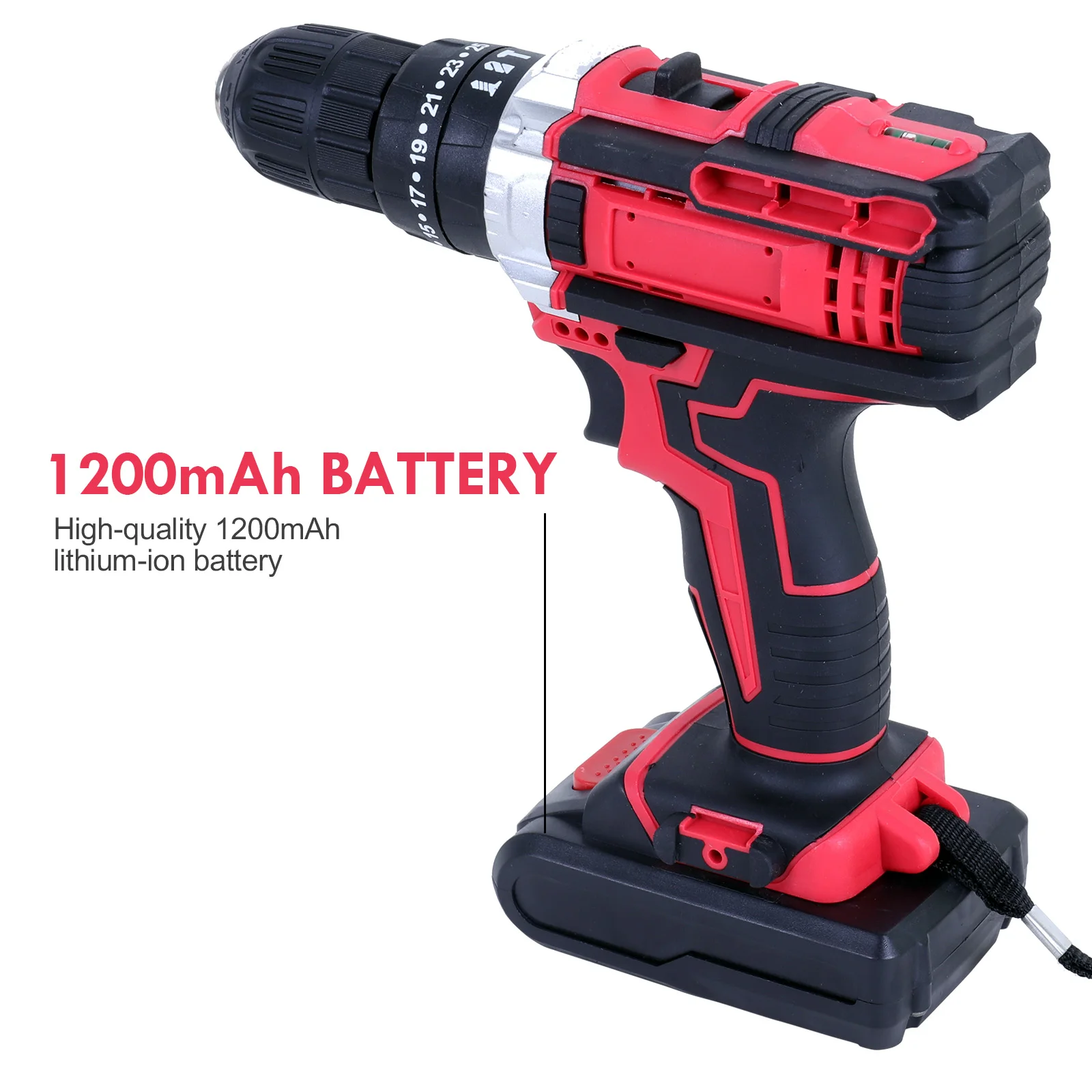 [1200mAh Battery & Working Light]: This impact-type cordless drill set is equipped with a high-quality 1200mAh lithium-ion battery, which can be used for strong and stable power and has long-lasting running time. Cordless lithium battery technology allows the electric drill to be used at any time without restriction. The 48V lithium-ion electric drill driver with front LED work light can illuminate any dark workspace.