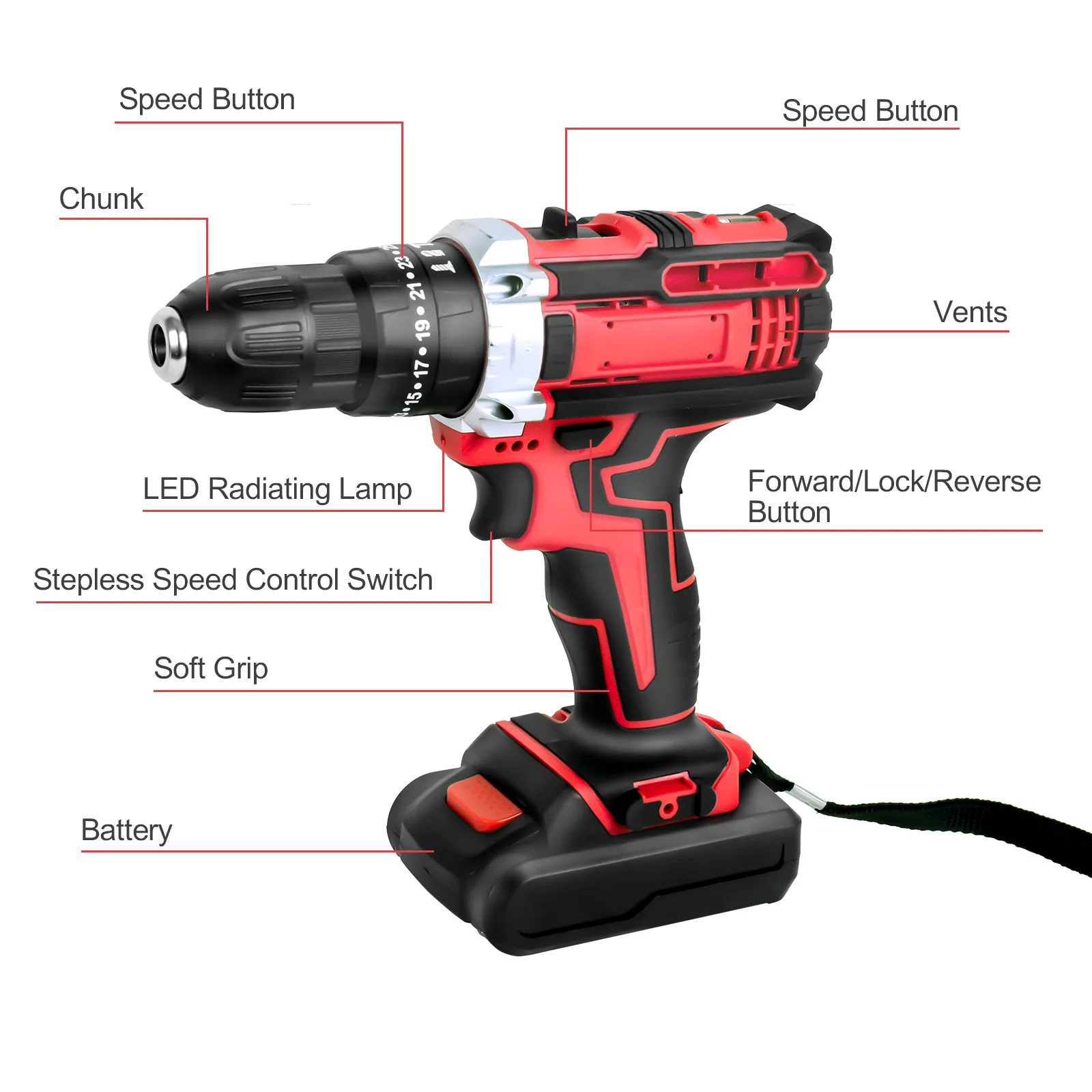 [3/8 Keyless Chuck]: This power drill is pretty easy and convenient to use. Compact drill driver has a large 3/8’’(10mm) keyless chuck which provides an automatic spindle lock that enables one-hand changing with advanced accessory compatibility.