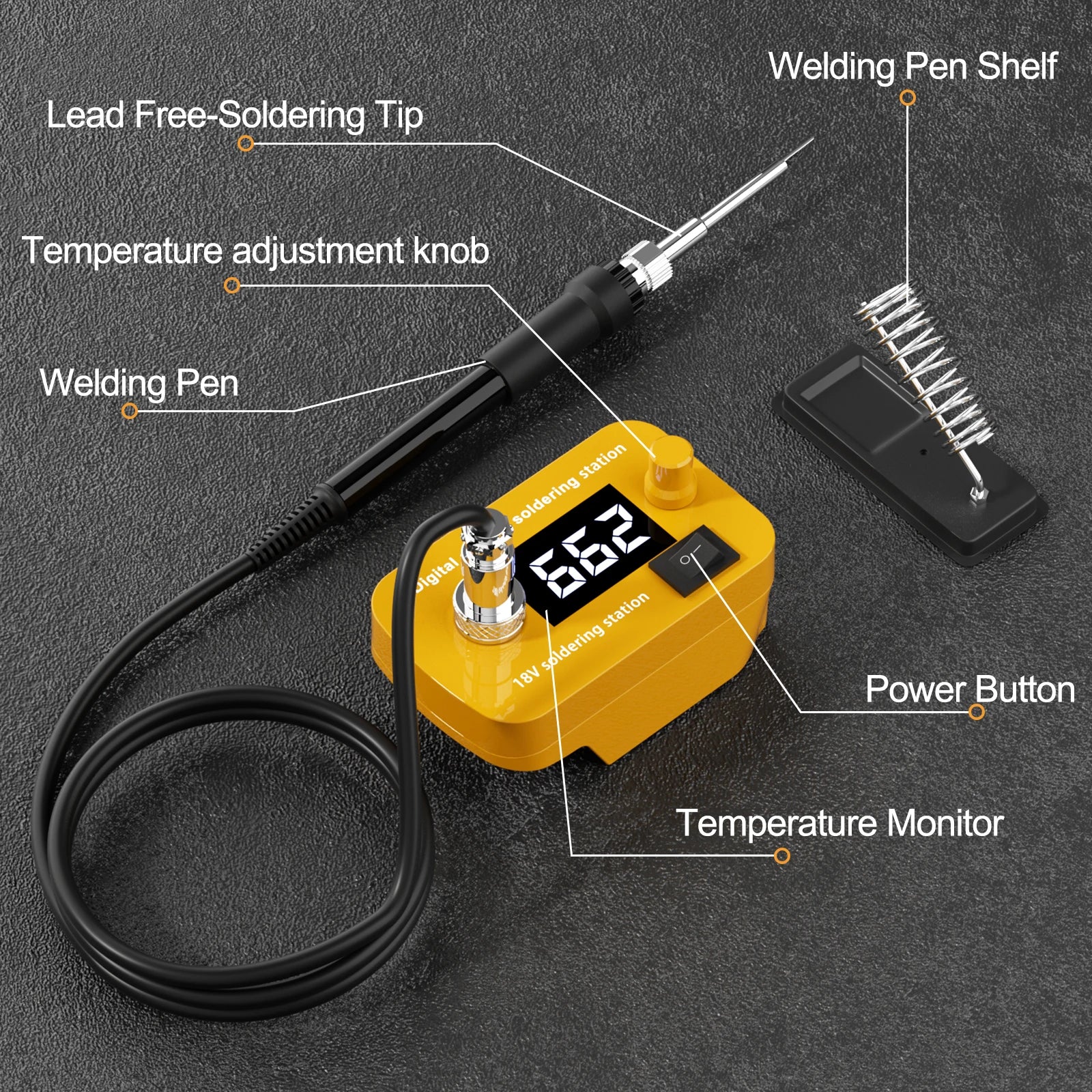 60W Electric Soldering Iron Adjustable Temperature Welding Machine LCD Digital Display Repair Tools For DEWALT 18V Battery