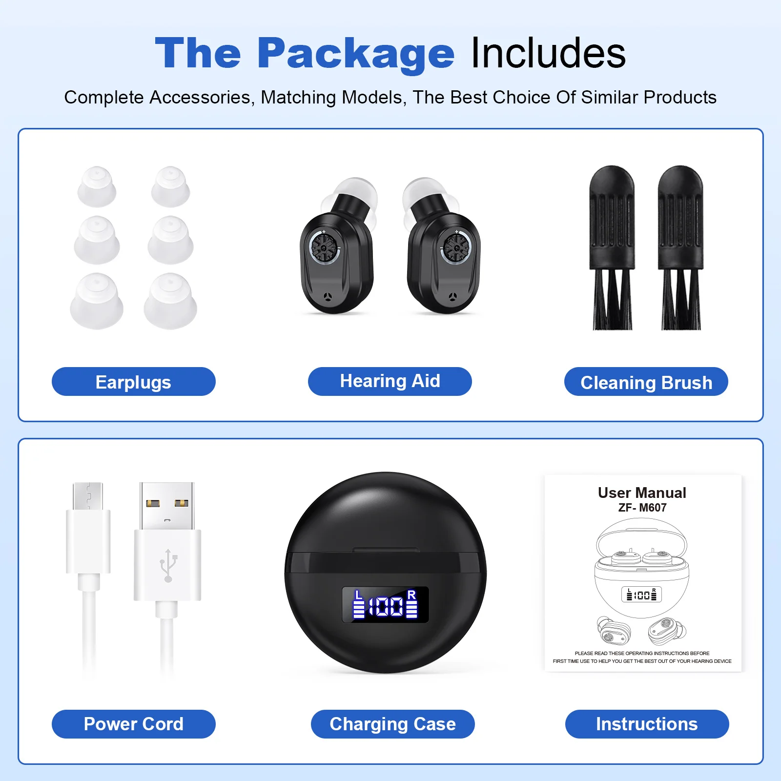 Digital display charging compartment fully charged can store 100 hours of power for the hearing aid charging 5 times