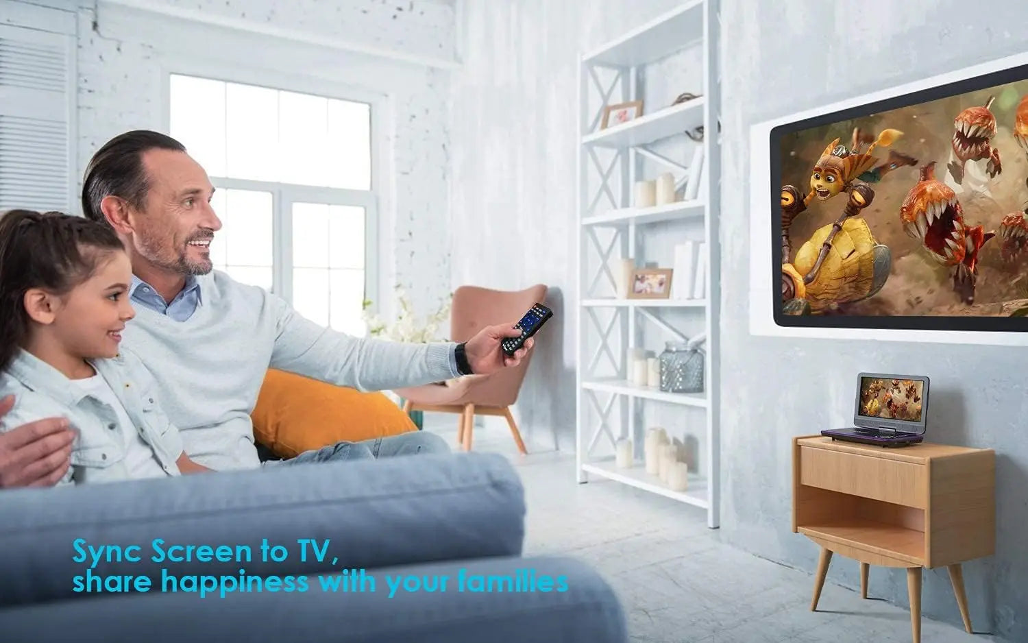 👨👩👧👦SYNC Screen Playing --- 1. The AV to RCA cable allows this portable DVD player to be connected to a TV to enjoy your favorite movies on a big screen. 2. Two portable DVD players for the car can also be connected by an AV to AV cable so that one movie can be watched on two players at the same time.