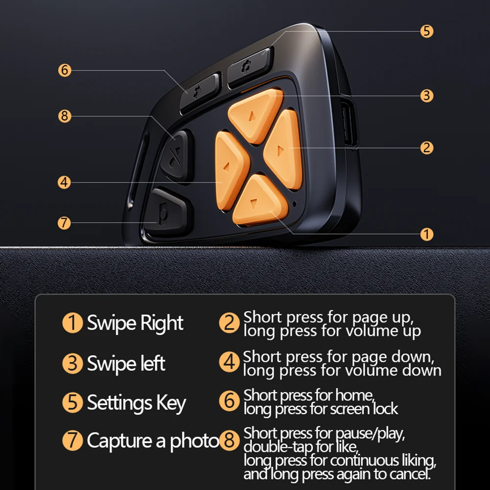 Functions: short video up and down page turning, e-book page turning, novel left and right page turning, space-like, one-click screen off, mobile phone camera photo/video