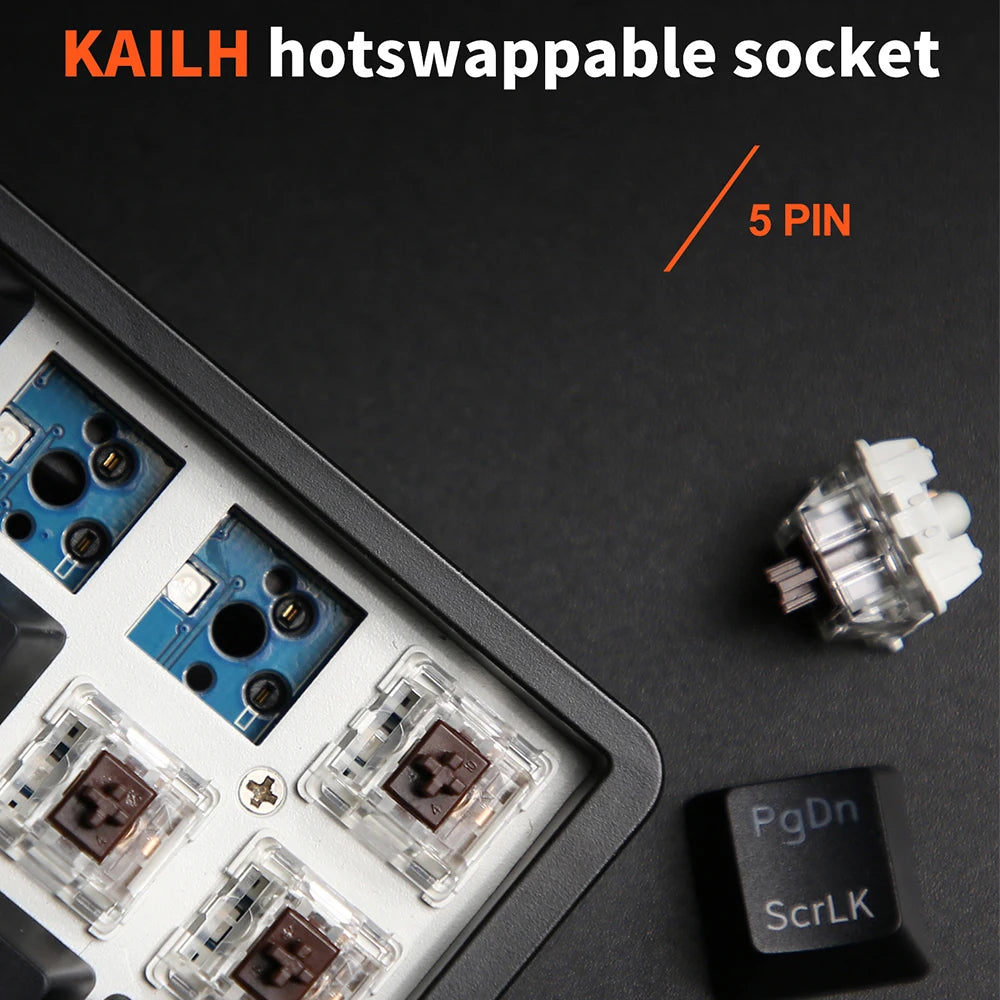 3. Hot-swappable- Hot-swap PCB allows you to replace 3 pins/5 pins switches freely without soldering issues. Enjoy the fun of making your own unique keyboard.