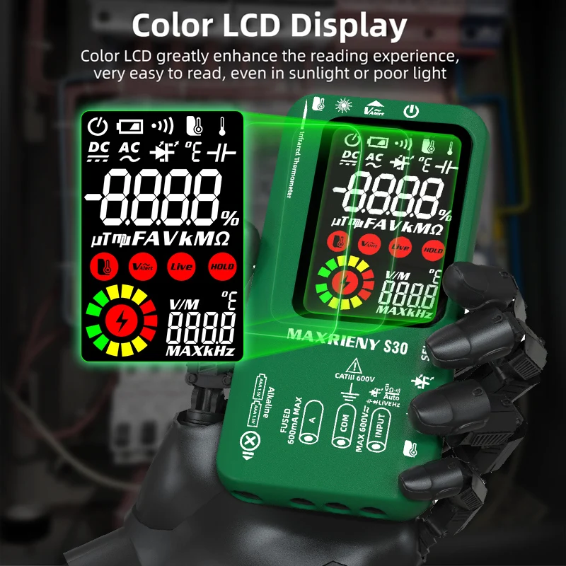S30 Digital Multimeter Infrared Thermometer Rechargeable Voltmeter 9999 Counts Electrical Amp Capacitance Diode Ohm Tester