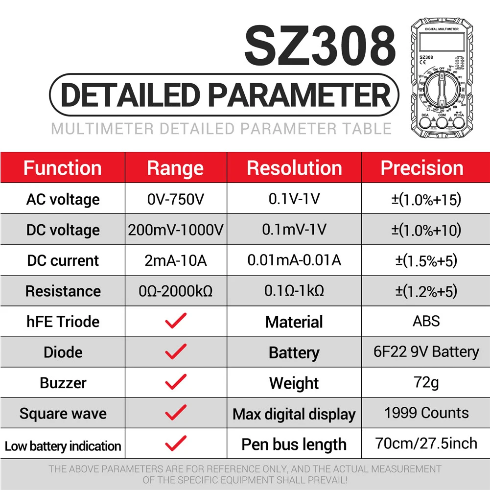 (SZ305 Red/SZ305 Black)--Digital Multimeter